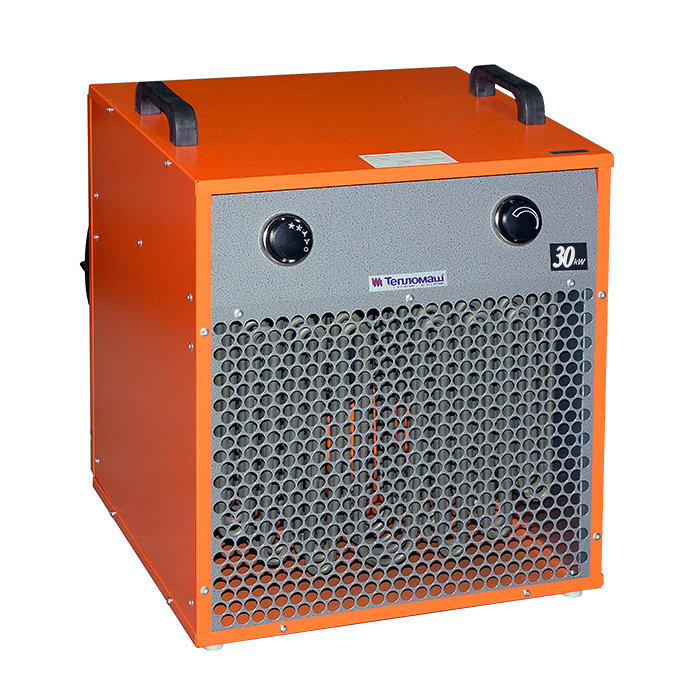 Тепловентилятор КЭВ-30Т20Е (Электрическая тепловая пушка КЭВ-30Т20Е) предназначен для воздушного отопления помещений большого объема: производственных цехов, складов, ангаров и т.п. В тепловентиляторе установлен терморегулятор, позволяющий поддерживать темпера- туру воздуха в помещении в диапазоне от +5 до +40 °C. Тепловентиляторы снабжены устройством защиты от перекоса и пропадания фаз, а также устройством защиты от внештатной ситуации: механическое заклинивание пускателя после выключения изделия роторным переключателем (в этом случае тепловентилятор остается в режиме обдува невыключившихся ТЭНов).