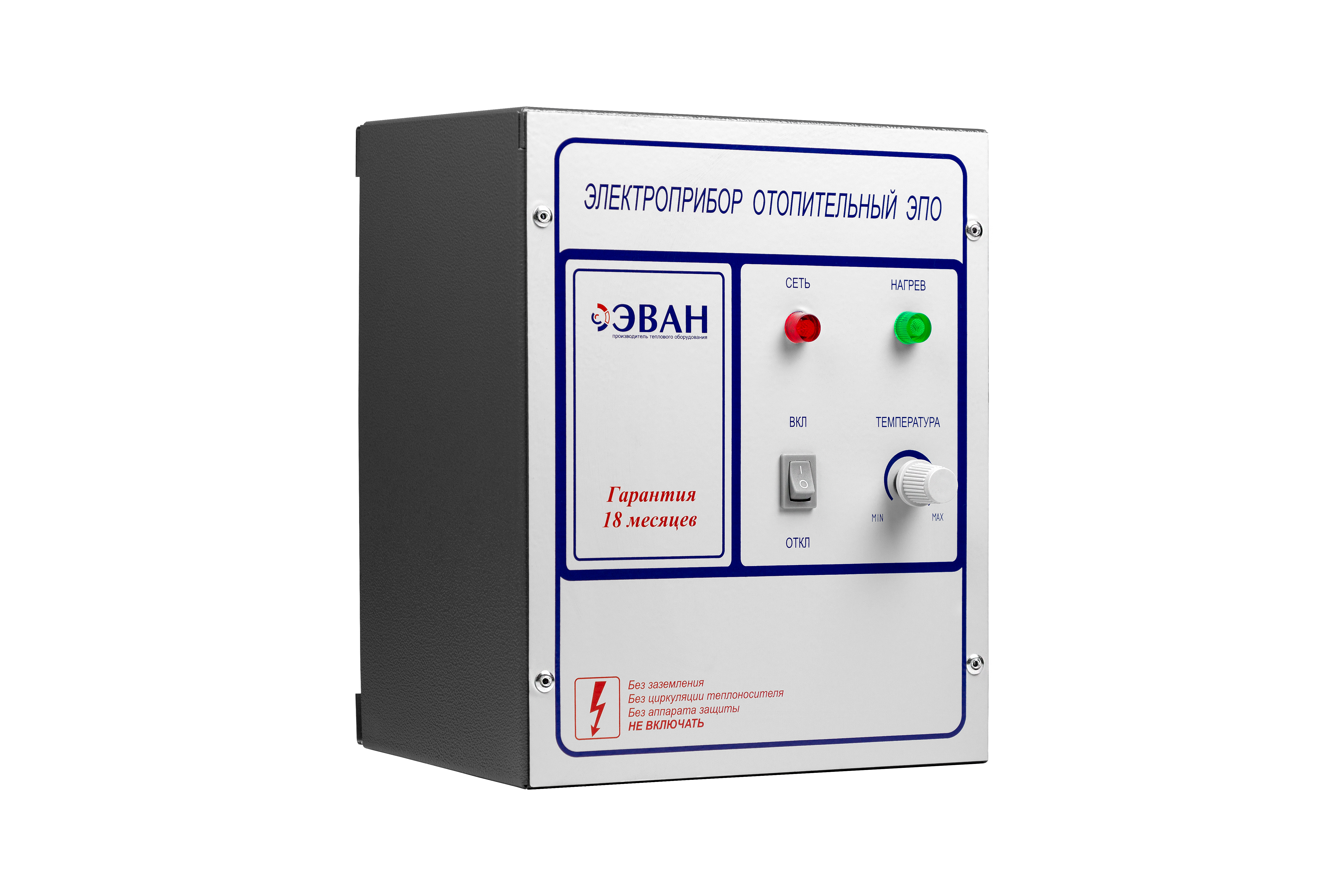 Пульт управления к электрокотлу ЭПО Эван, позволяет независимо регулировать уровень нагрева и ступени мощности.